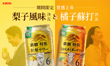 【新品上市】「KIRIN麒麟特製調酒-橘子風味蘇打」、「KIRIN麒麟特製調酒-梨子風味沙瓦」期間限定上市!