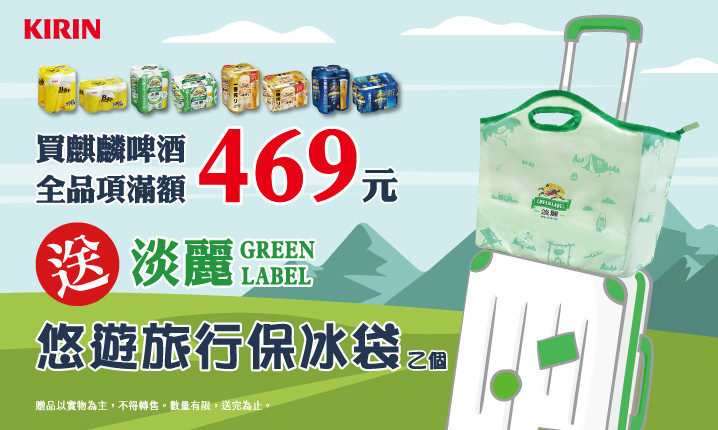 【活動消息】購買麒麟啤酒系列商品滿額469元,送【淡麗悠遊旅行保冰袋】乙個