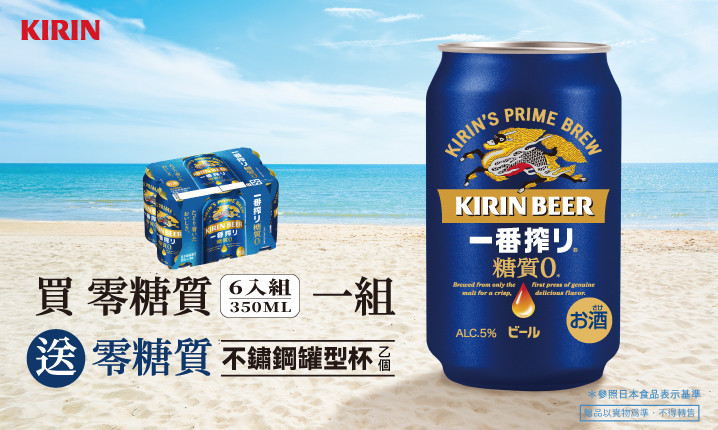 ▲活動內容:買一番搾零糖質啤酒350ml多入組,送【不鏽鋼罐型杯】乙個。