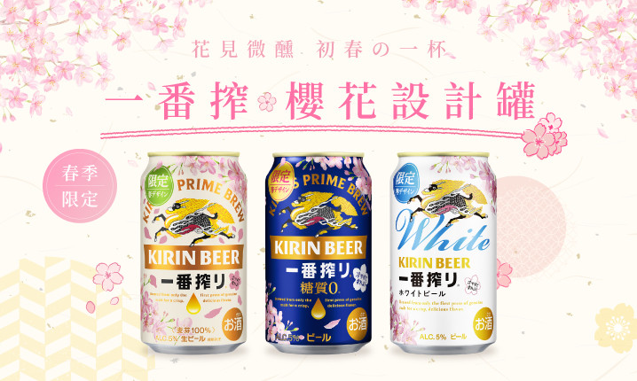 春季限定回歸KIRIN「一番搾櫻花罐系列」,體驗屬於這個季節的小小儀式!三款不同口味的一番搾,都推出了富有春日氣息的櫻花設計罐!讓無論是喜歡經典麥香、清甜低負擔還是小麥柔和果香的酒友,都能樂在麒中。