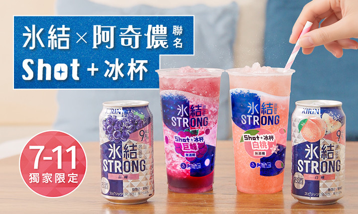 冰結和阿奇儂攜手聯名,推出「冰結x阿奇儂Shot+冰杯-白桃」、「冰結x阿奇儂Shot+冰杯-巨峰」,4/1起於7-Eleven正式上架,上市期間還有冰結和Shot+冰杯三件(任選) 79折好康優惠!