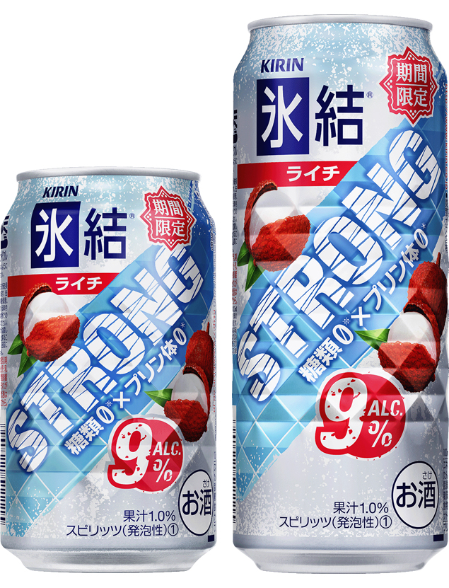 包裝以清爽水色為背景、罐身中間配置顯眼的「STRONG」文字與水潤果實感的插圖、表現出荔枝的華麗香氣與紮實的口感設計。KIRIN「冰結 Strong系列」水果調酒–荔枝,喝得到荔枝甜美華麗的香氣,口感濃烈,清爽水潤的果汁感,入喉後帶來紮實的後勁,是您絕對不能錯過的水果調酒。