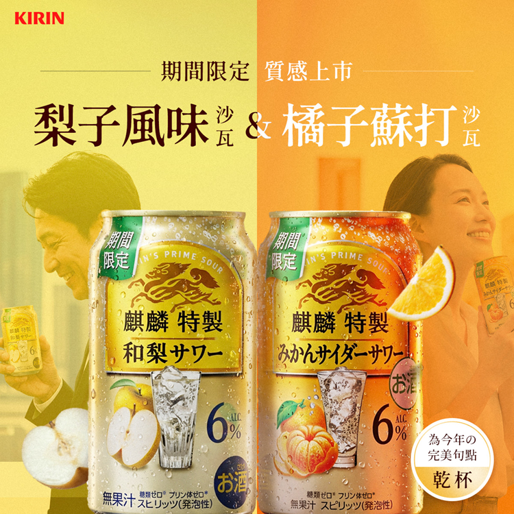 【新品上市】「KIRIN麒麟特製調酒-橘子風味蘇打」、「KIRIN麒麟特製調酒-梨子風味沙瓦」期間限定上市!