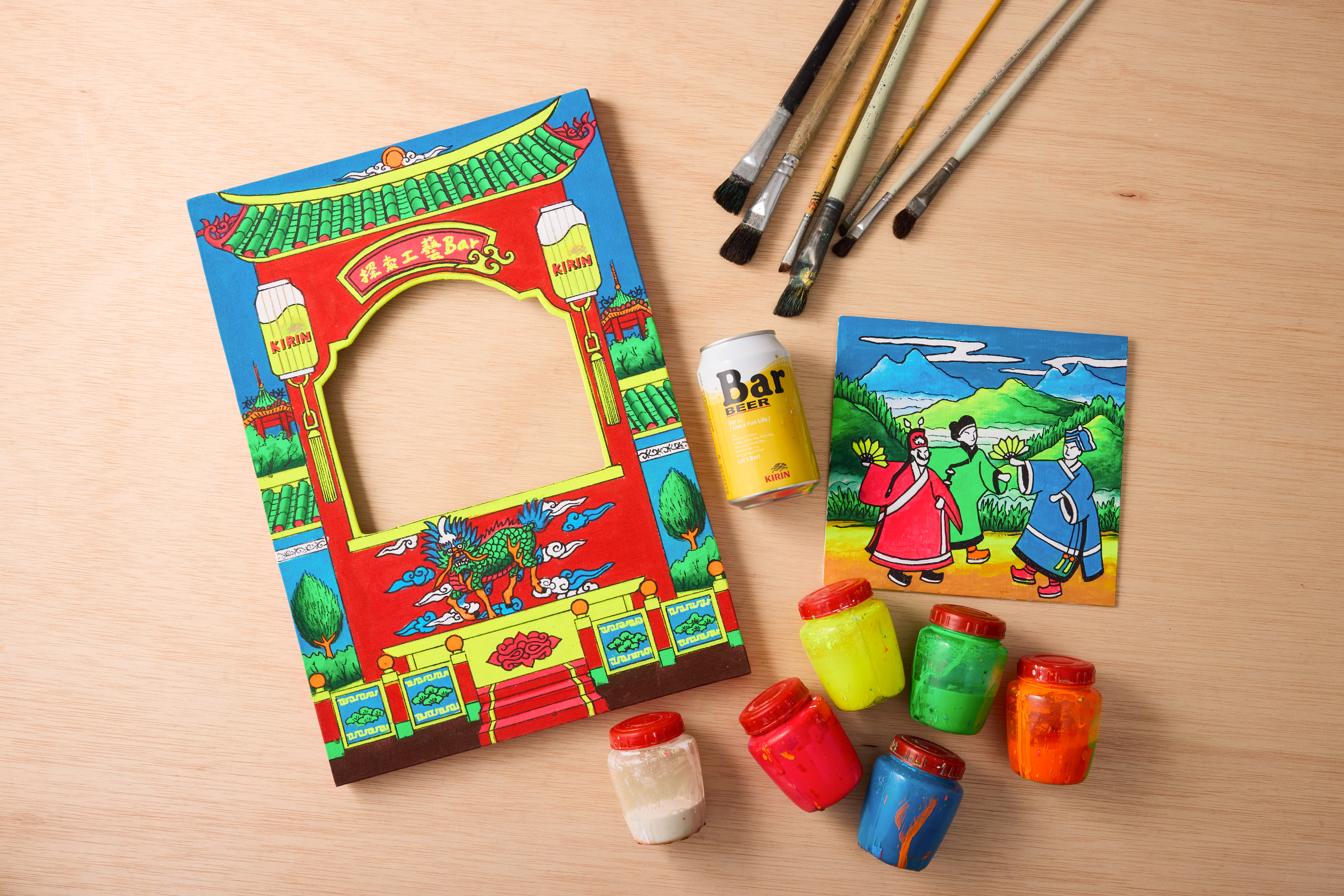 「探索工藝Bar」走進位於嘉義溪口的「明山臺灣民俗佈景社」,看見國寶級彩繪師陳明山60年來如何以畫筆勾勒舞台與醮壇,從布袋戲的榮景到地方信仰的延續,看民俗佈景彩繪如何在時代更迭中,展現屬於臺灣的繽紛色彩。本次合作的「布袋戲工藝Bar 彩繪戲台」,即是以特製的可換景片DIY迷你戲台,邀請大家一起感受手繪舞台與設計景片的樂趣。