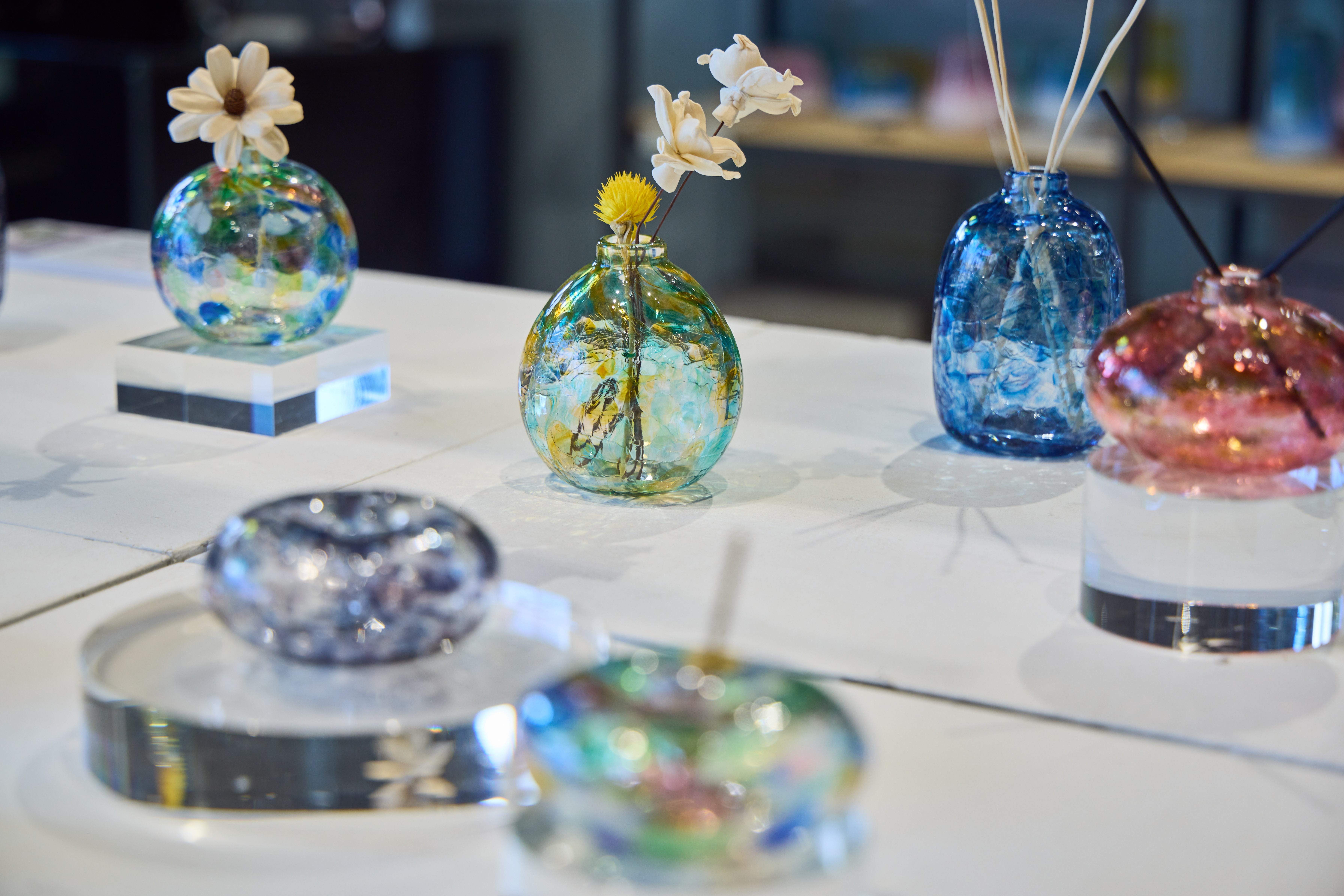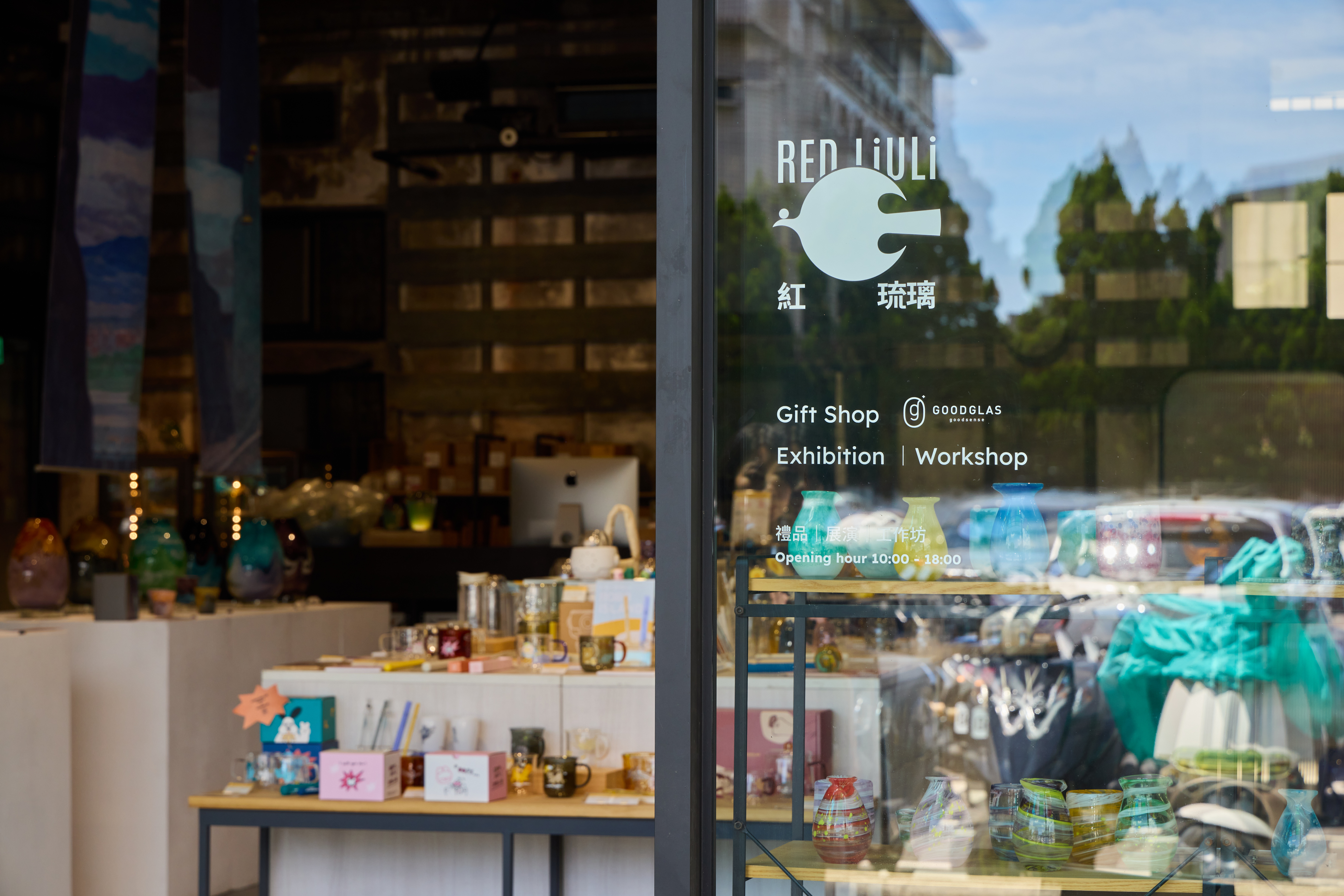 走進紅琉璃,先是被琳瑯滿目的玻璃藝品吸引,接著被一旁吹製玻璃的工作現場吸住,看著玻璃在一次次吹製與拖拉之間,在師傅手上逐漸成形。而紅琉璃也沒放棄藝術實踐,除了持續開發琉璃藝品,也投入建築外牆、裝置藝術與公共藝術的合作,讓玻璃工藝成為生活中可見的美感。