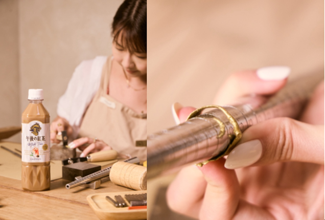 兩至三小時的動手體驗,最後還能帶回親手製作的紀念品,可以想像,佩戴著戒指,每一次看到就會回到這個在金工教室中敲敲打打的下午。「如果我們說它是一種記憶的鑰匙,那午後紅茶對我來說也是一樣,也代表了我人生的某一時期。」