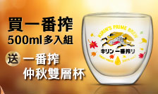 指定通路買一番搾啤酒500ml多入組,贈「仲秋雙層杯」!