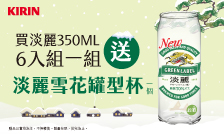 指定通路買淡麗啤酒350ml多入組,送「雪花罐型杯」杯子乙個!
