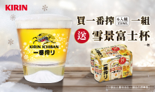 指定通路買一番搾啤酒350ml多入組,送「雪景富士杯」乙個!