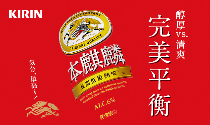 「KIRIN本麒麟啤酒」採用一邊提高溫度、一邊進行糖化的製法——浸出糖化法(Infusion mashing),讓大麥的甜味可以徹底浸出、減少雜味,並延長低溫熟成時間1.5倍*,使口感醇厚卻不失清爽尾韻,實現完美平衡的本格啤酒口感。