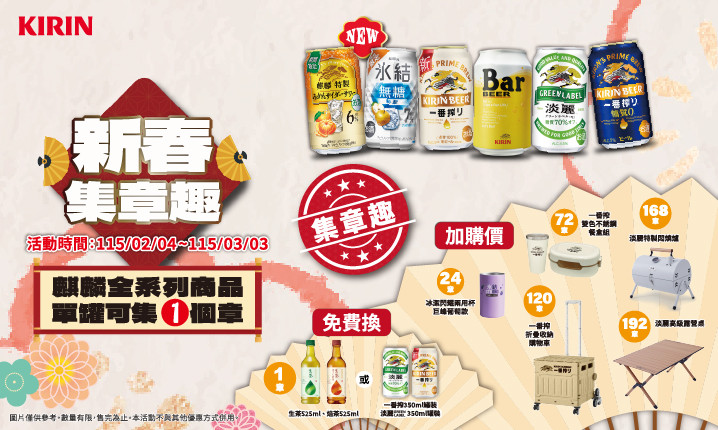 ▲集章兌換說明:蒐集指定章數即可兌換KIRIN好禮,活動詳情以集章趣活動及實際各門市公告為準。