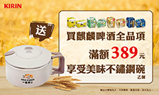 【活動消息】購買麒麟啤酒系列商品滿額389元 送【享受美味不鏽鋼碗】乙個